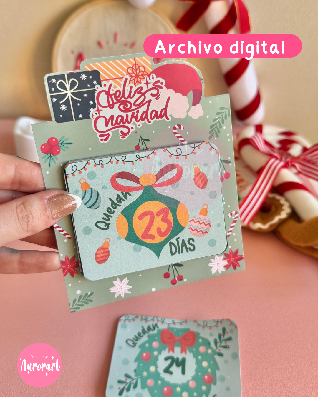 ¡El calendario de adviento más mágico y moderno llegó para contagiar el espíritu navideño! Nuestro diseño exclusivo "Feliz Navidad: Cuenta Regresiva" es el producto digital perfecto para inyectar emoción y diversión en tu hogar o negocio.